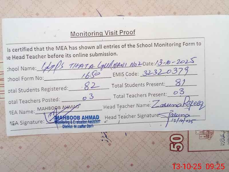 | EMIS Code: 32320379 | Name of School: GGPS THATHA GORMANI NO. 2 | |||
