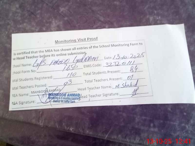 | EMIS Code: 32320111 | Name of School: GPS FAROOQ GURMANI | |||