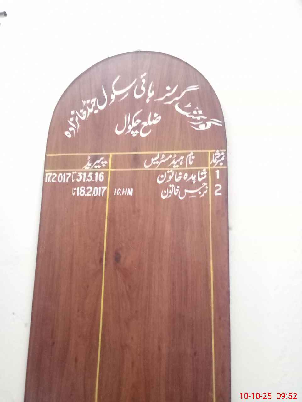 | District: CHAKWAL | Tehsil: CHAKWAL | Markaz: SECONDARY-WING | Level: High | |