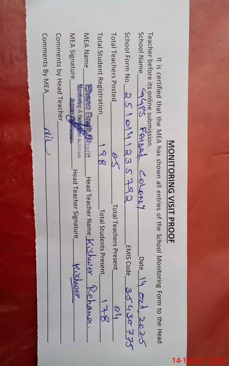 | EMIS Code: 35430775 | Name of School: GGPS FASIAL COLONY | |||