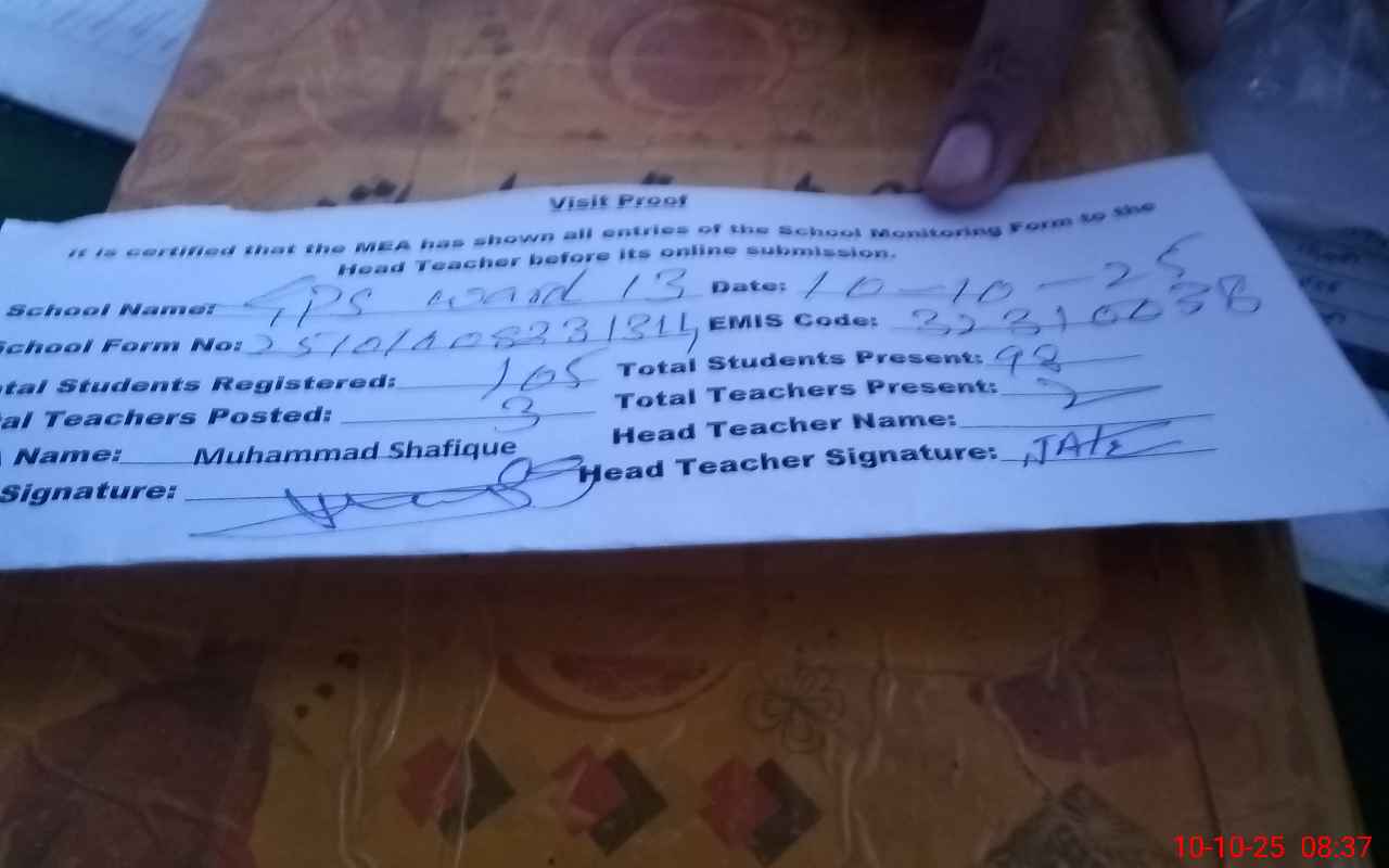 | EMIS Code: 32310038 | Name of School: GPS WARD NO. 13 ALIPUR | |||