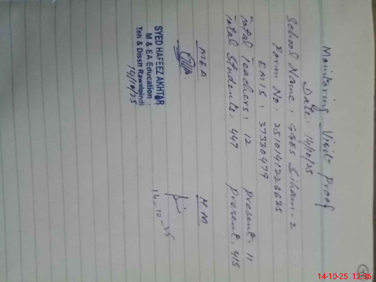 | Certified that this School was Inspected by the Undersigned MEA/DMO Today and the Information Stated Above is as Per Record. | |||||