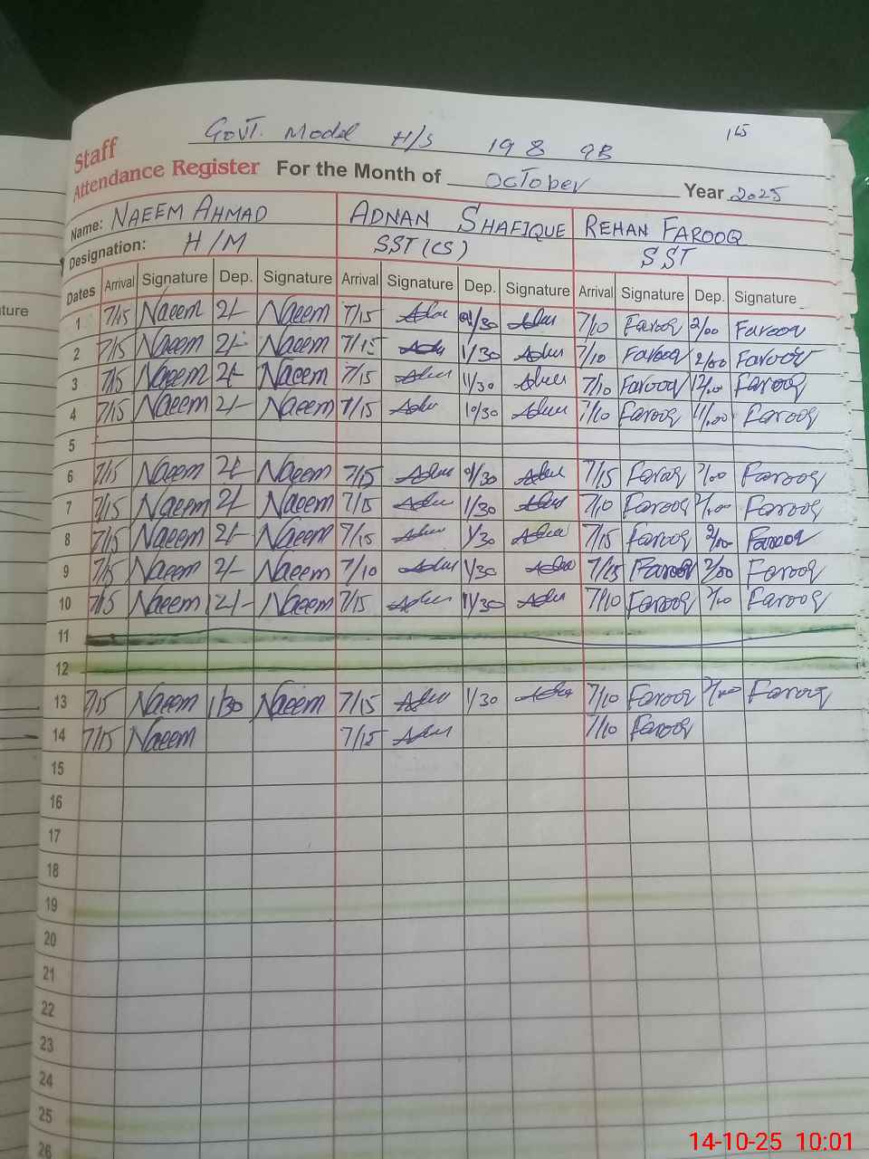 | Name: AM**** AL**** FA**** Designation: (School Headmaster's/Headmistress's) SST (ARTS) Phone/Cell Number: 03**** |