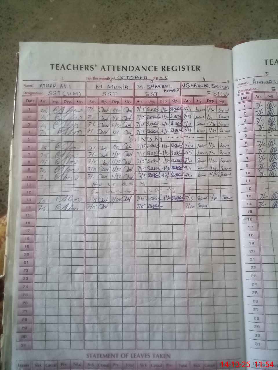 | Leave | Duty | Absent | Maternity | Medical | Ex- Pak |