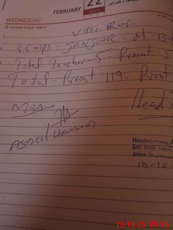 | Attendance Register | Head Teacher | MEA with School | Visit Proof |