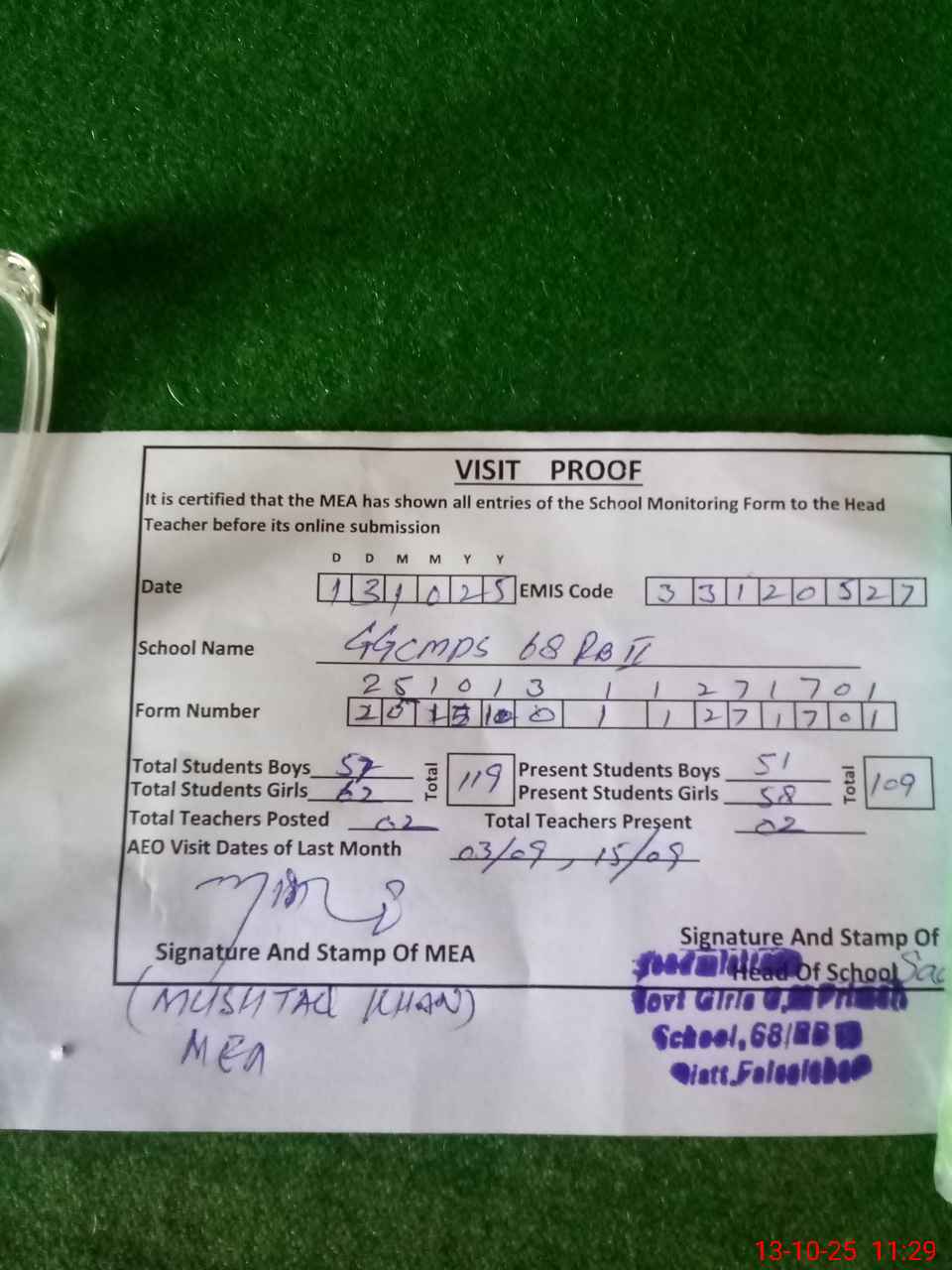 | EMIS Code: 33120527 | Name of School: GGCMS CHAK 68 RB KHURRIANWALA | |||