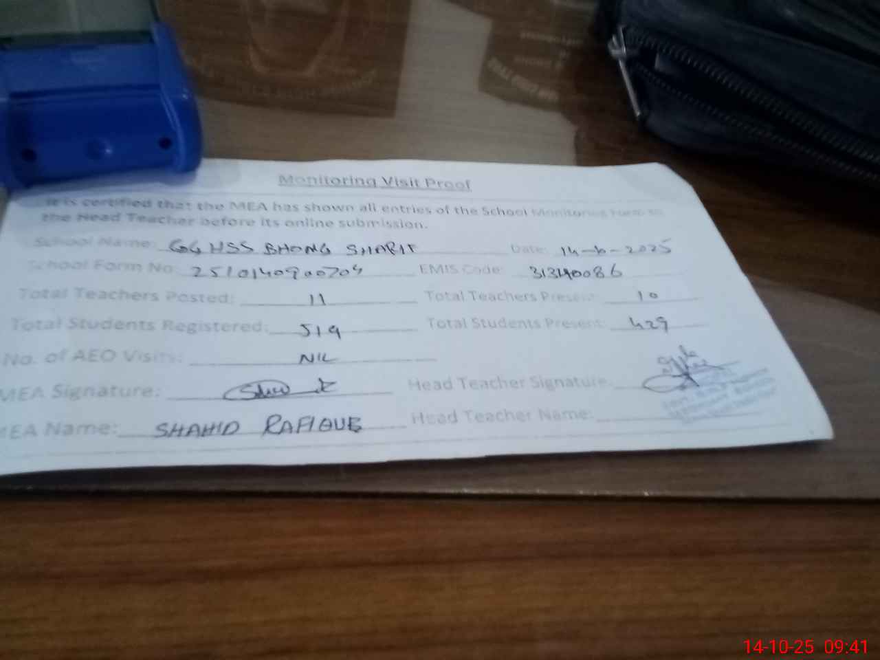 | Certified that this School was Inspected by the Undersigned MEA/DMO Today and the Information Stated Above is as Per Record. | |||||