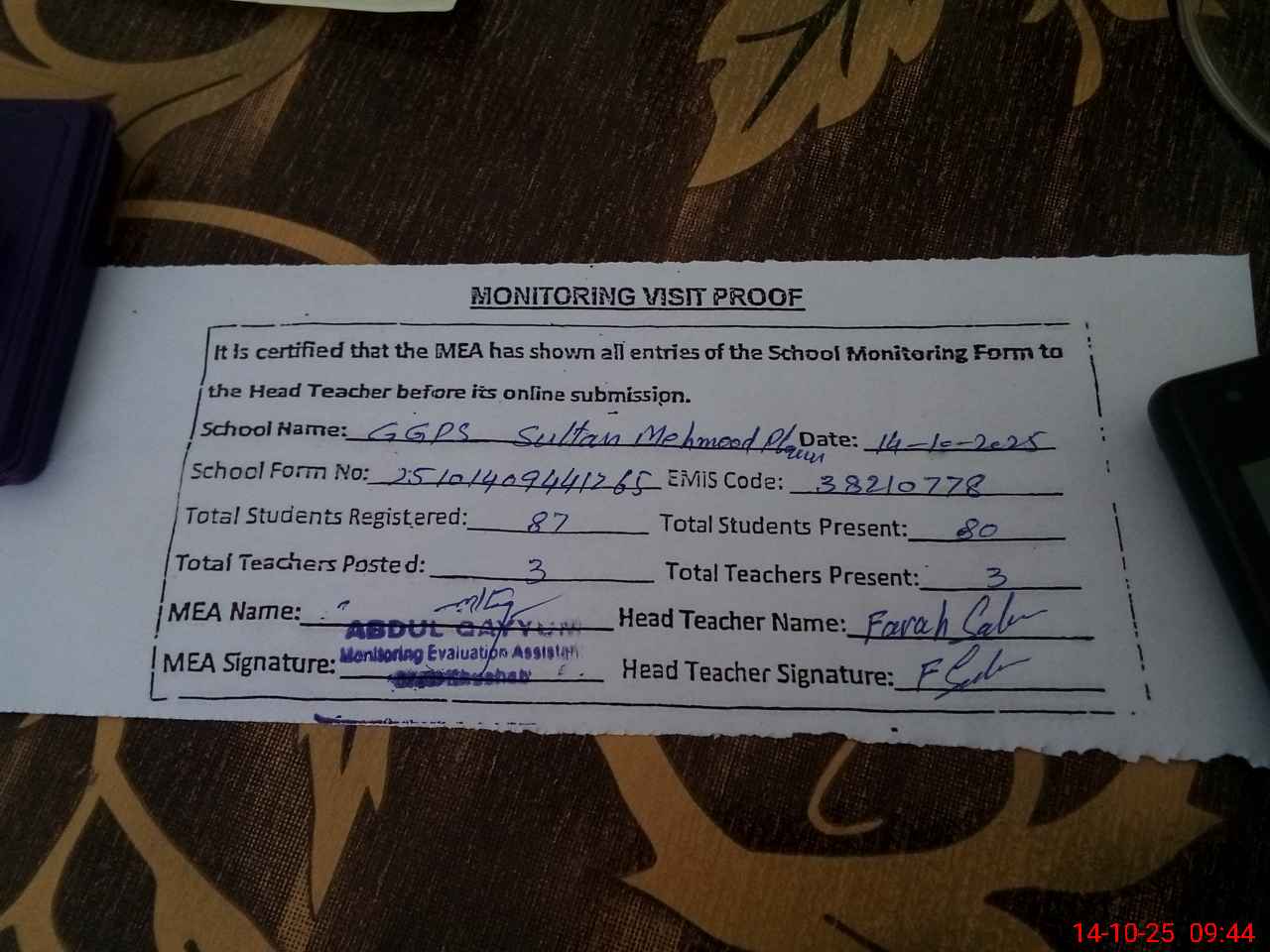 | EMIS Code: 38210778 | Name of School: GGPS HAJI SULTAN MEHMOOD PALUWAN | |||
