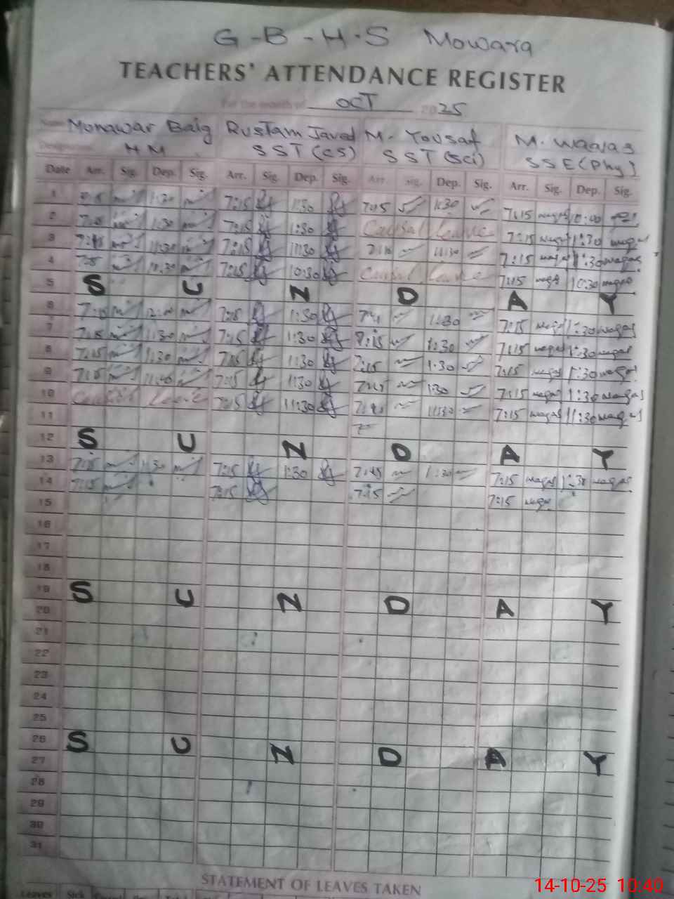 | Name: Mu**** Ba**** Designation: (School Headmaster's/Headmistress's) SST Arts Phone/Cell Number: 03**** |