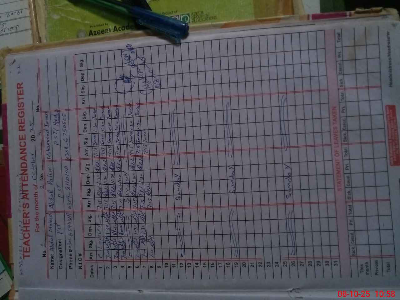 | Name: TA**** AB**** Designation: (School Headmaster's/Headmistress's) PST Phone/Cell Number: 03**** |