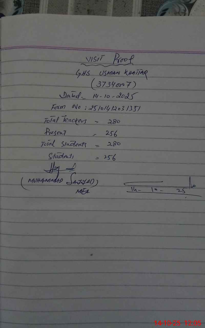 | EMIS Code: 37340007 | Name of School: GHS USMAN KHATTAR | |||