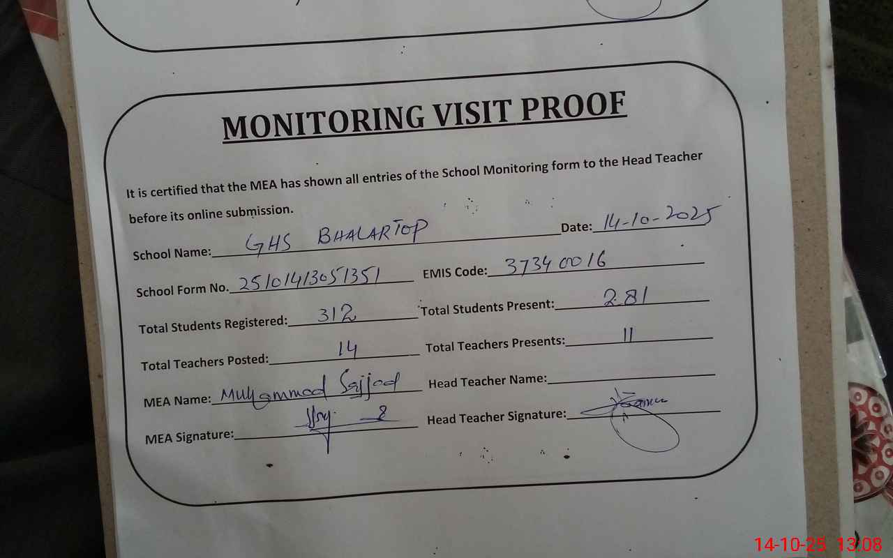 | EMIS Code: 37340016 | Name of School: GHS BHALLARTOP | |||