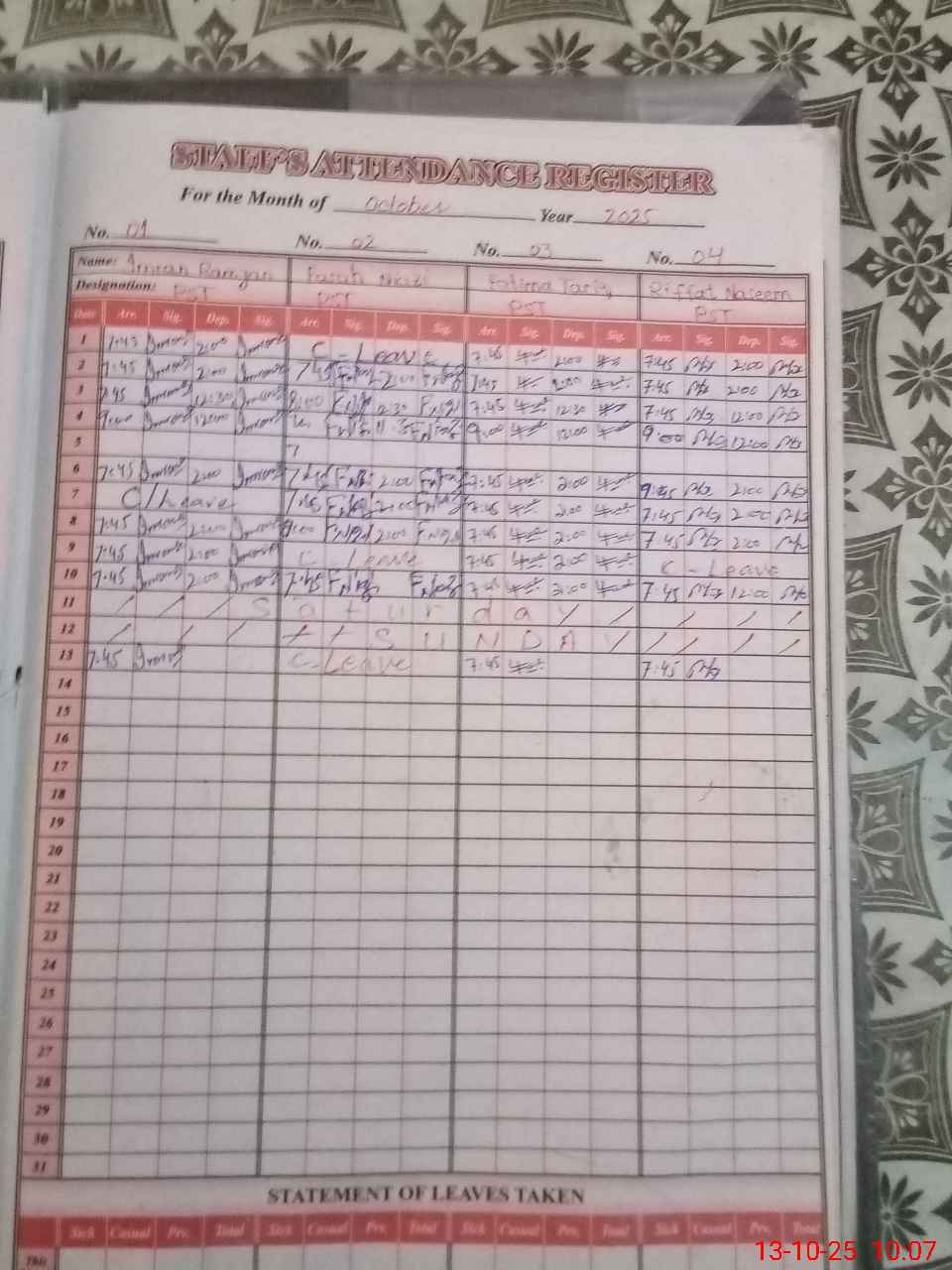 | Remarks (Use Separate Page if Required): Muhammad Sadiq NQ of this School attached to GGES Kahna No 2 he has died on 09 September 2025 35210712 | |||||