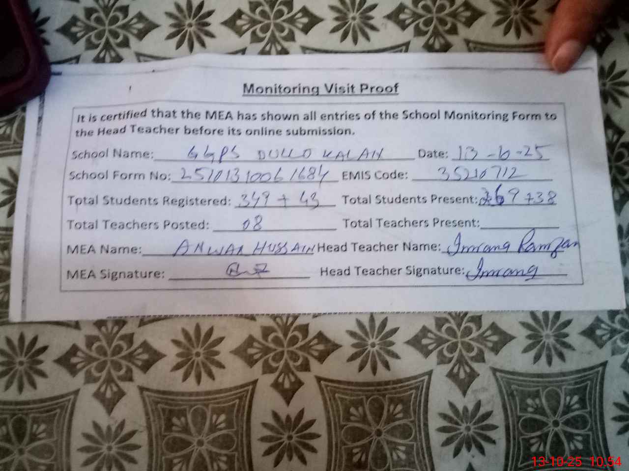 | EMIS Code: 35210712 | Name of School: GGPS DULLO KALAN | |||