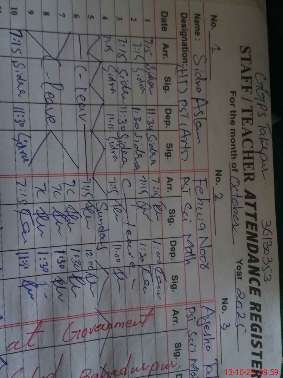 | Name: Si**** As**** Designation: (School Headmaster's/Headmistress's) PST Phone/Cell Number: 03**** |