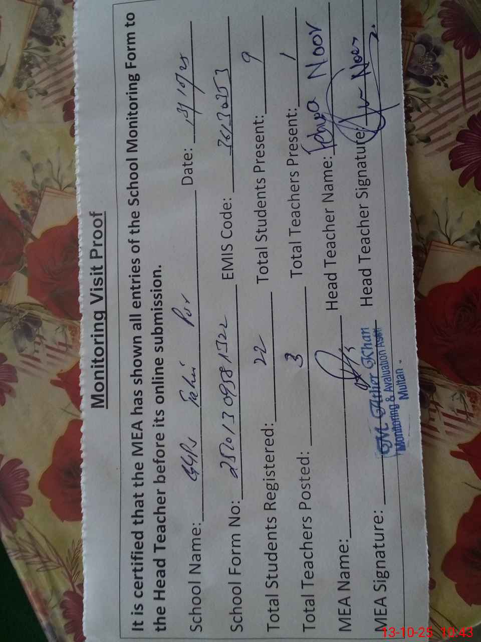 | EMIS Code: 36130353 | Name of School: GGPS TAHIR PUR MULTAN | |||