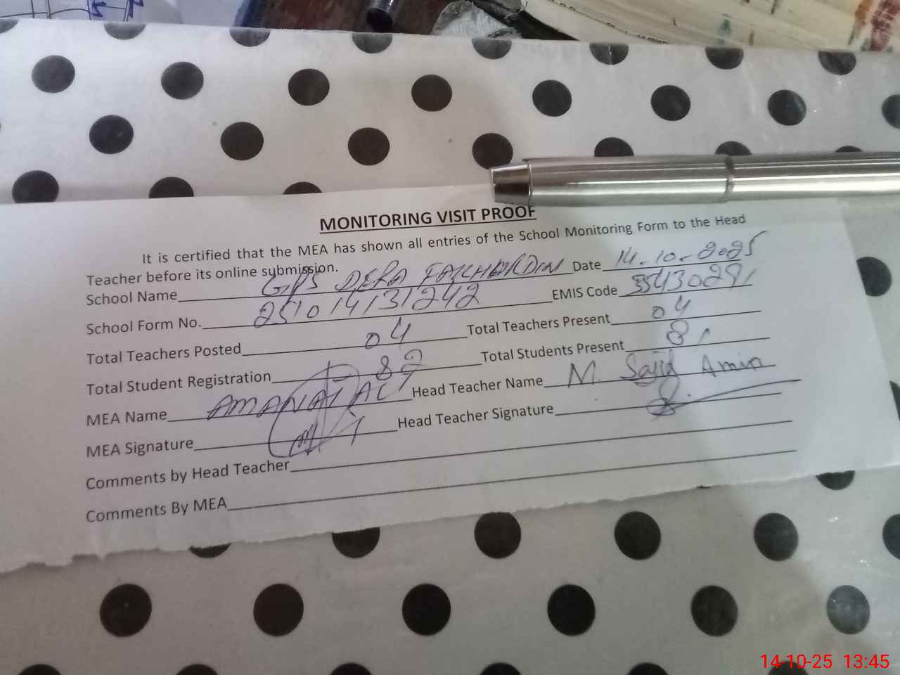 | EMIS Code: 35430291 | Name of School: GPS DERA FAKHAR UD DIN | |||