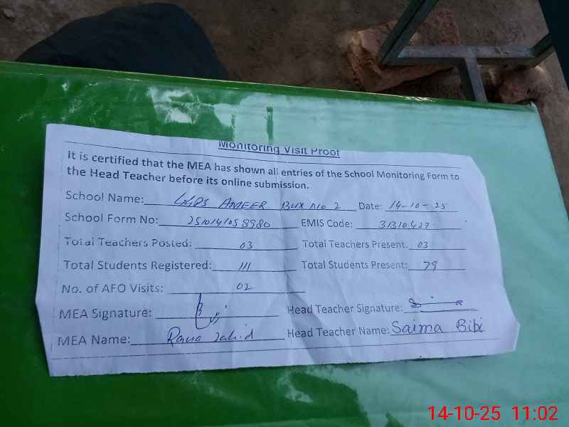 | EMIS Code: 31310427 | Name of School: GGPS BASTI AMEER BUX NO. 2 | |||