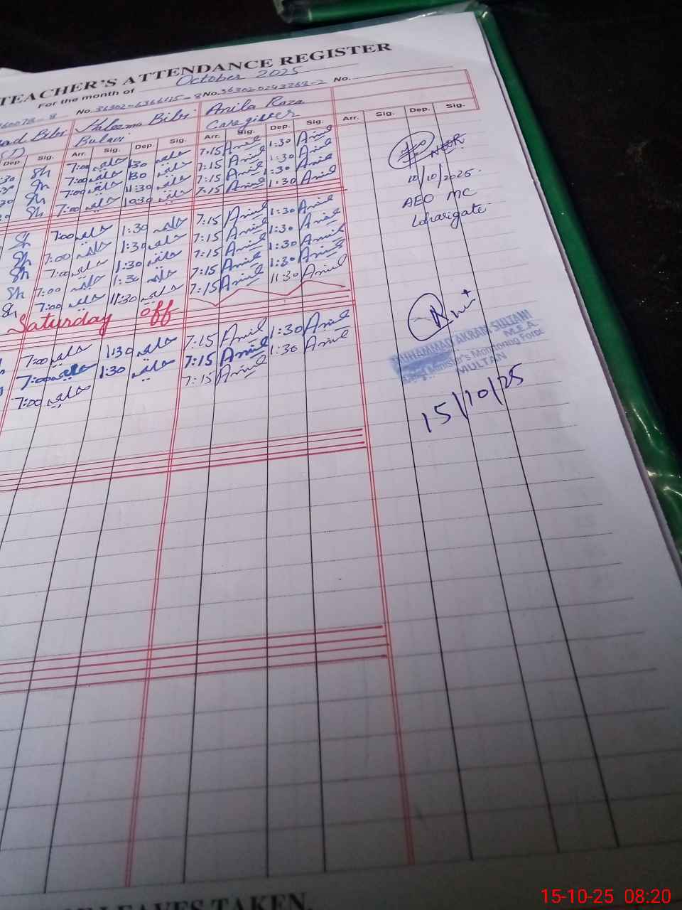 | Monitoring Date: 15-10-2025 | Start Time: 15-10-2025 08:05 AM | End Time: 15-10-2025 08:24 AM | Name of MEA: MU**** AK**** | |