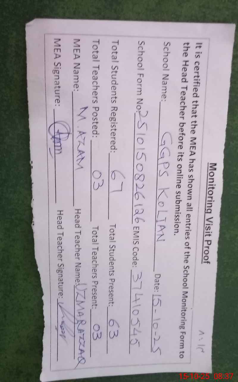 | EMIS Code: 37410545 | Name of School: GGPS KOLAIN PO CHAKORA CHAKWAL | |||