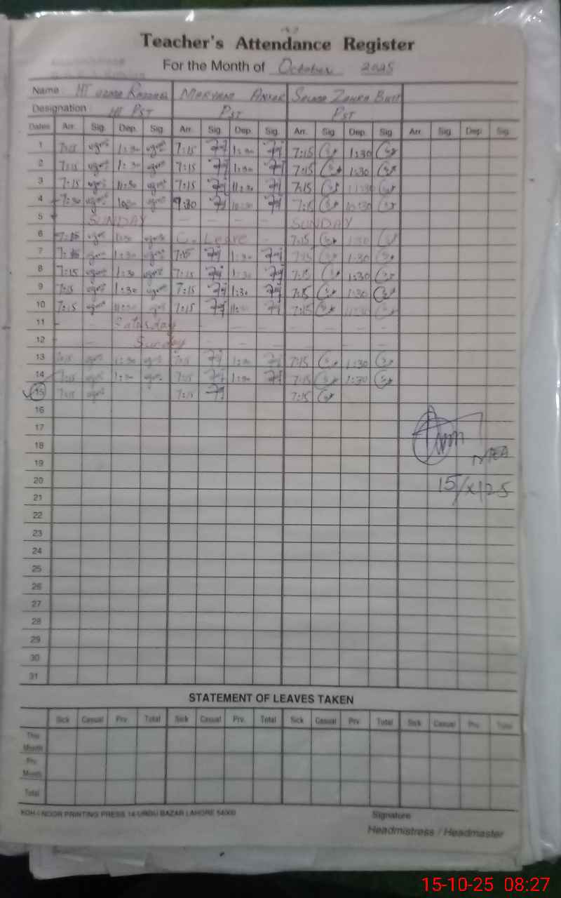 | Name: Uz**** Ra**** Designation: (School Headmaster's/Headmistress's) HEADMISTRESS Phone/Cell Number: 03**** |