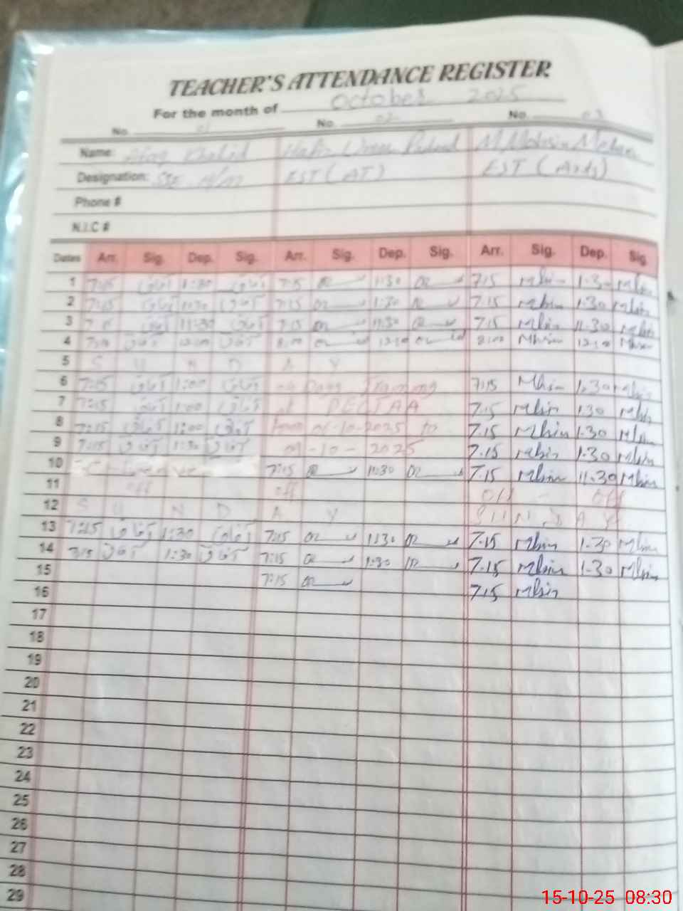 | 37**** | Af**** Kh**** | 6 | 2 | 0 | 0 | 0 | 0 | 0 | 0 | 0 | 0 | 0 | Absent (Un-Authorized) |