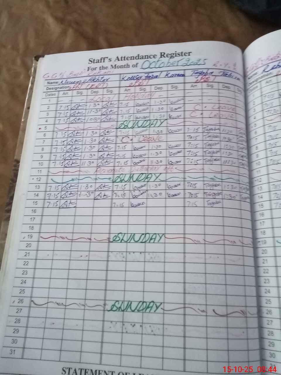 | Leave | Duty | Absent | Maternity | Medical | Ex- Pak |