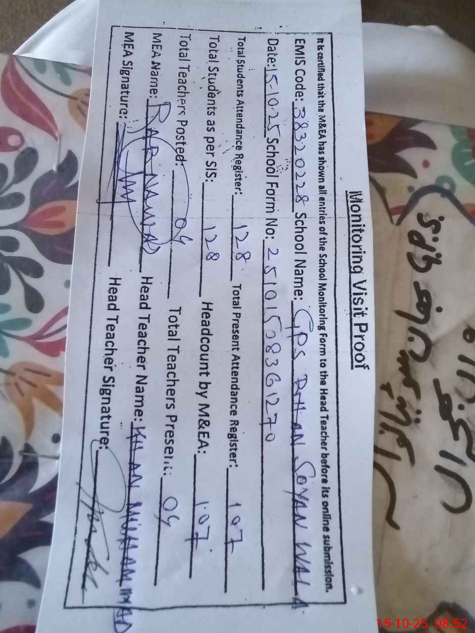 | EMIS Code: 38320228 | Name of School: GPS BHAN SOYAN WALA | |||