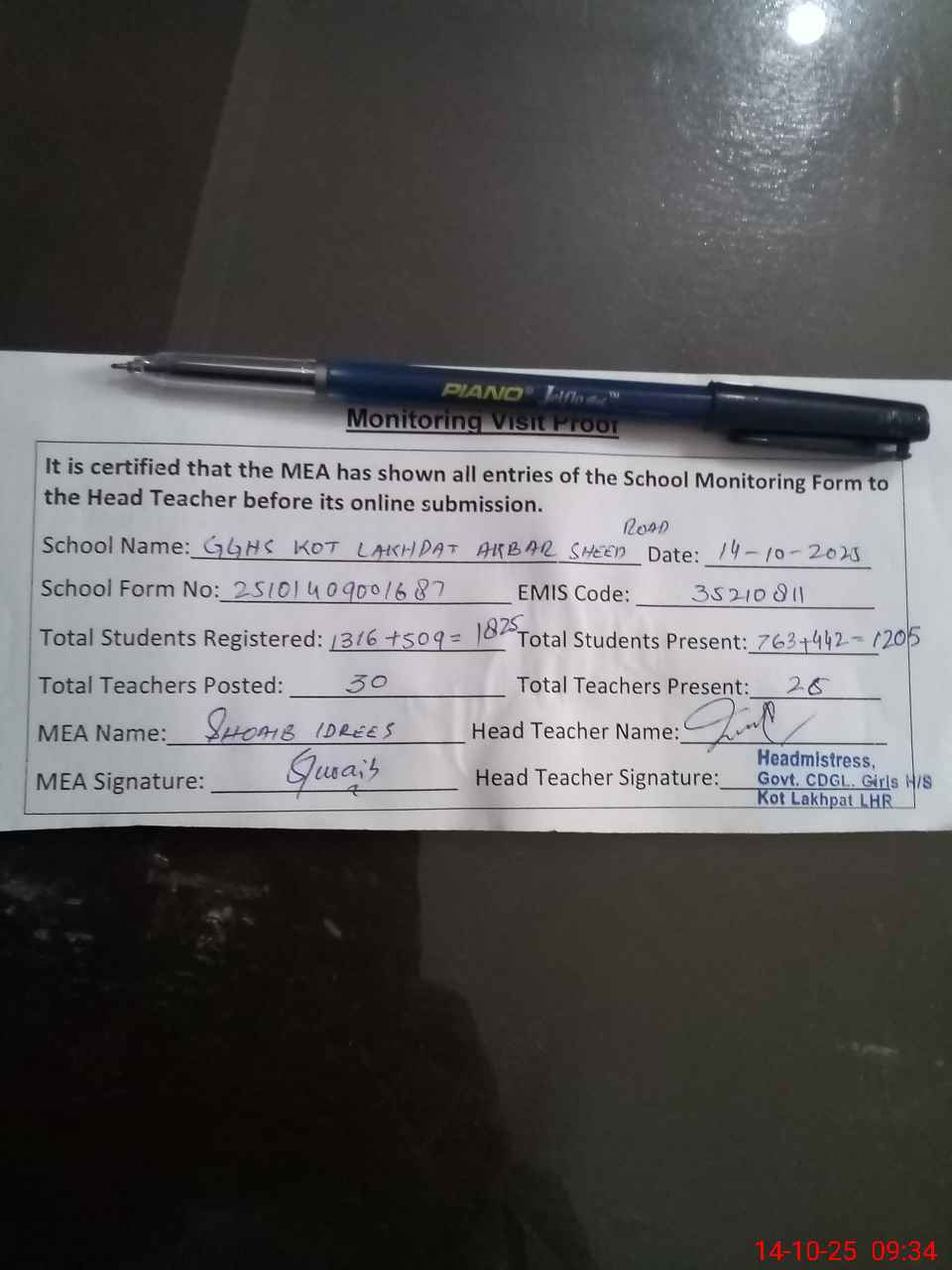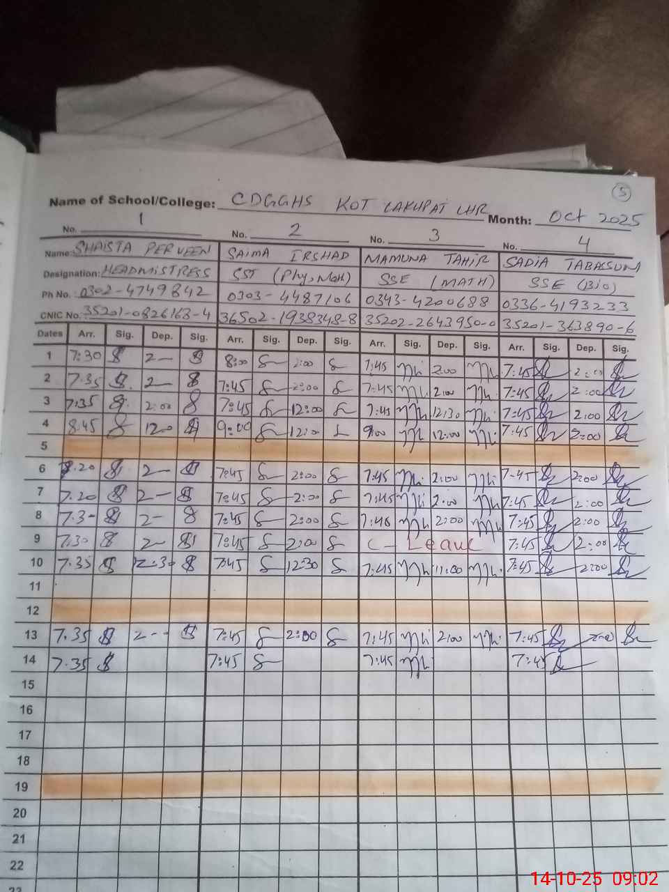 | EMIS Code: 35210811 | Name of School: GGHS KOT LAKHPAT AKBAR SHEED ROAD (EX-MCL) | |||