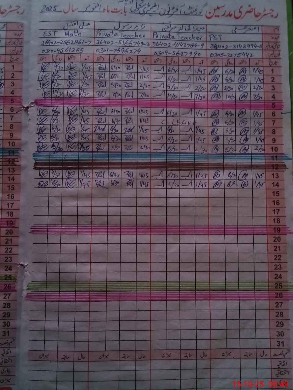 | Name: AS**** AL**** Designation: (School Headmaster's/Headmistress's) PST Phone/Cell Number: 03**** |
