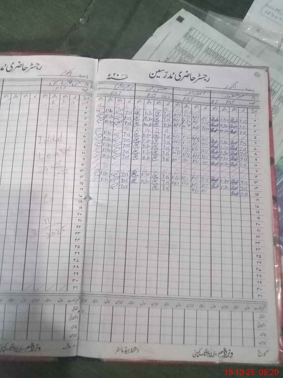 | CNIC | Full Name | Designation | R/C | Absence During Last Calender Month |