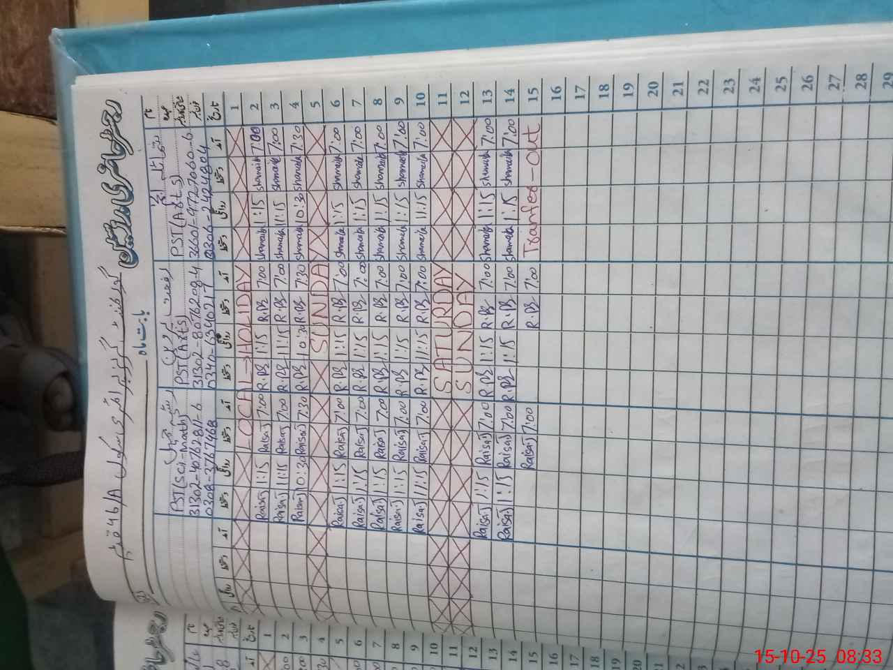 | CNIC | Full Name | Designation | R/C | Absence During Last Calender Month |