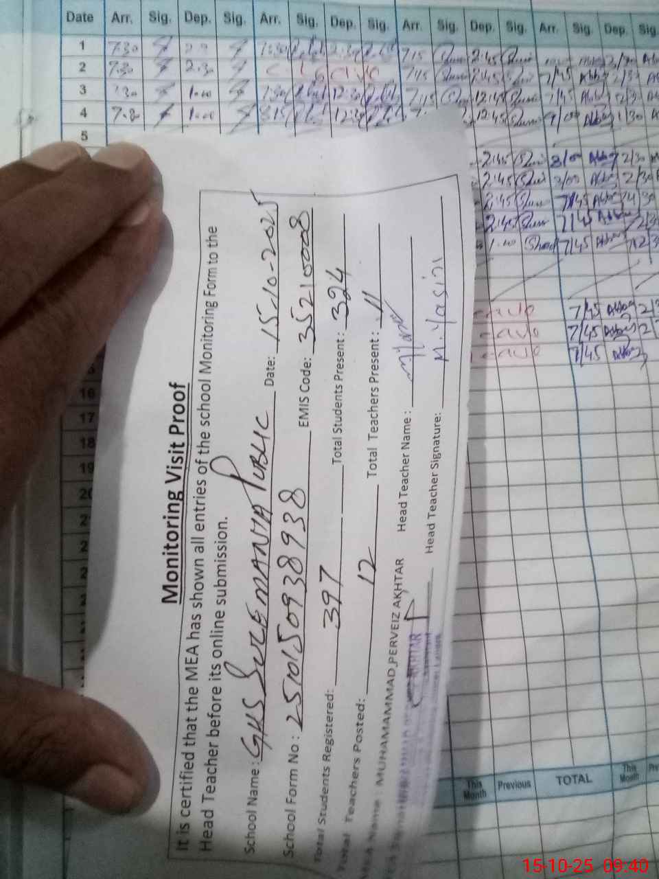 | EMIS Code: 35210008 | Name of School: GHS SULEMANIA PUBLIC SAMANABAD | |||