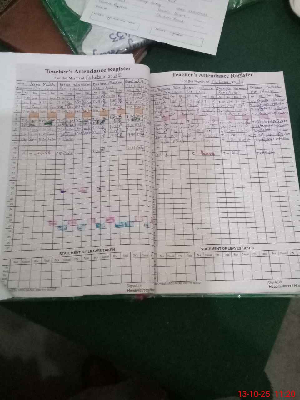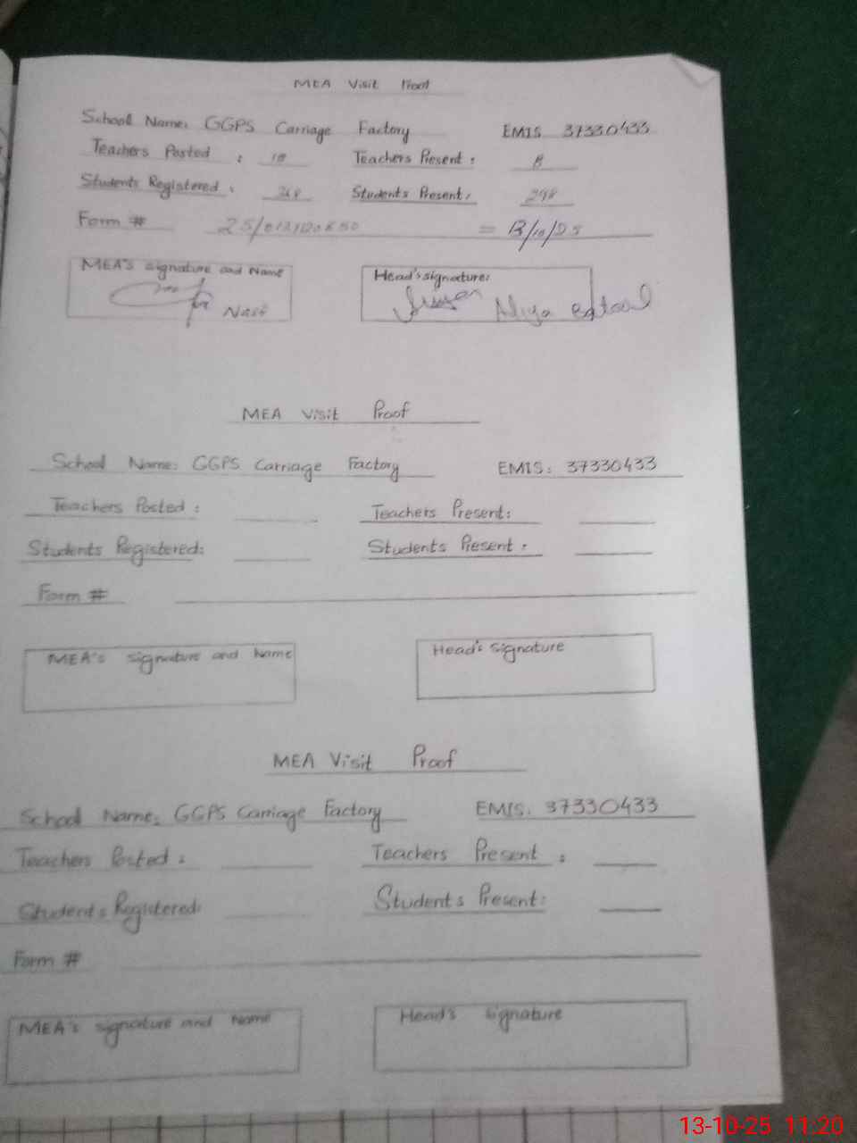 | Attendance Register | Head Teacher | MEA with School | Visit Proof |