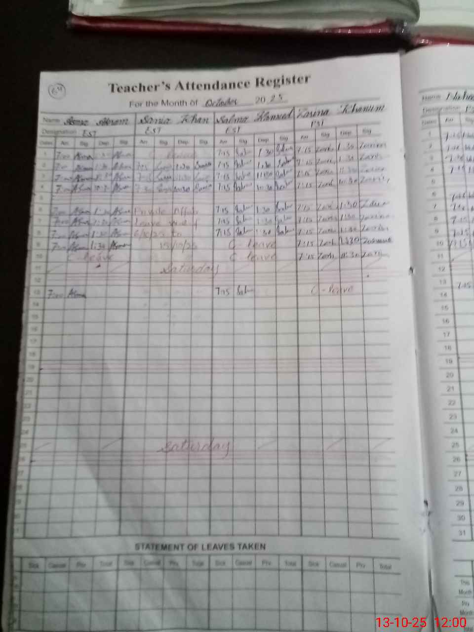 | 37**** | Za**** Kh**** | PST | Regular | 0 | 0 | 0 | 0 | 0 | 0 | 0 | 0 | 0 | Casual |