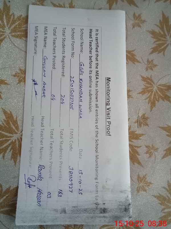 | EMIS Code: 38110927 | Name of School: GGPS TIBBA KHANDDAN WALA | |||
