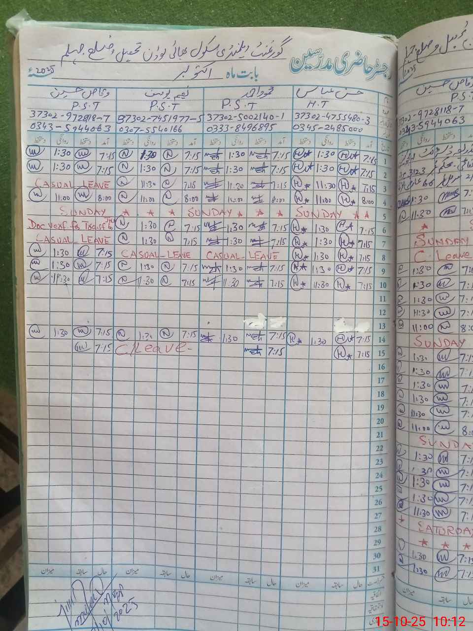 | Remarks (Use Separate Page if Required): NAEEM YOUSAF PST IS MARKED ABSENT BECAUSE NO ONLINE C LEAVE APPROVED | |||||