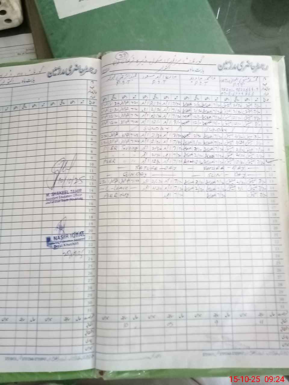| CNIC | Full Name | Designation | R/C | Absence During Last Calender Month |