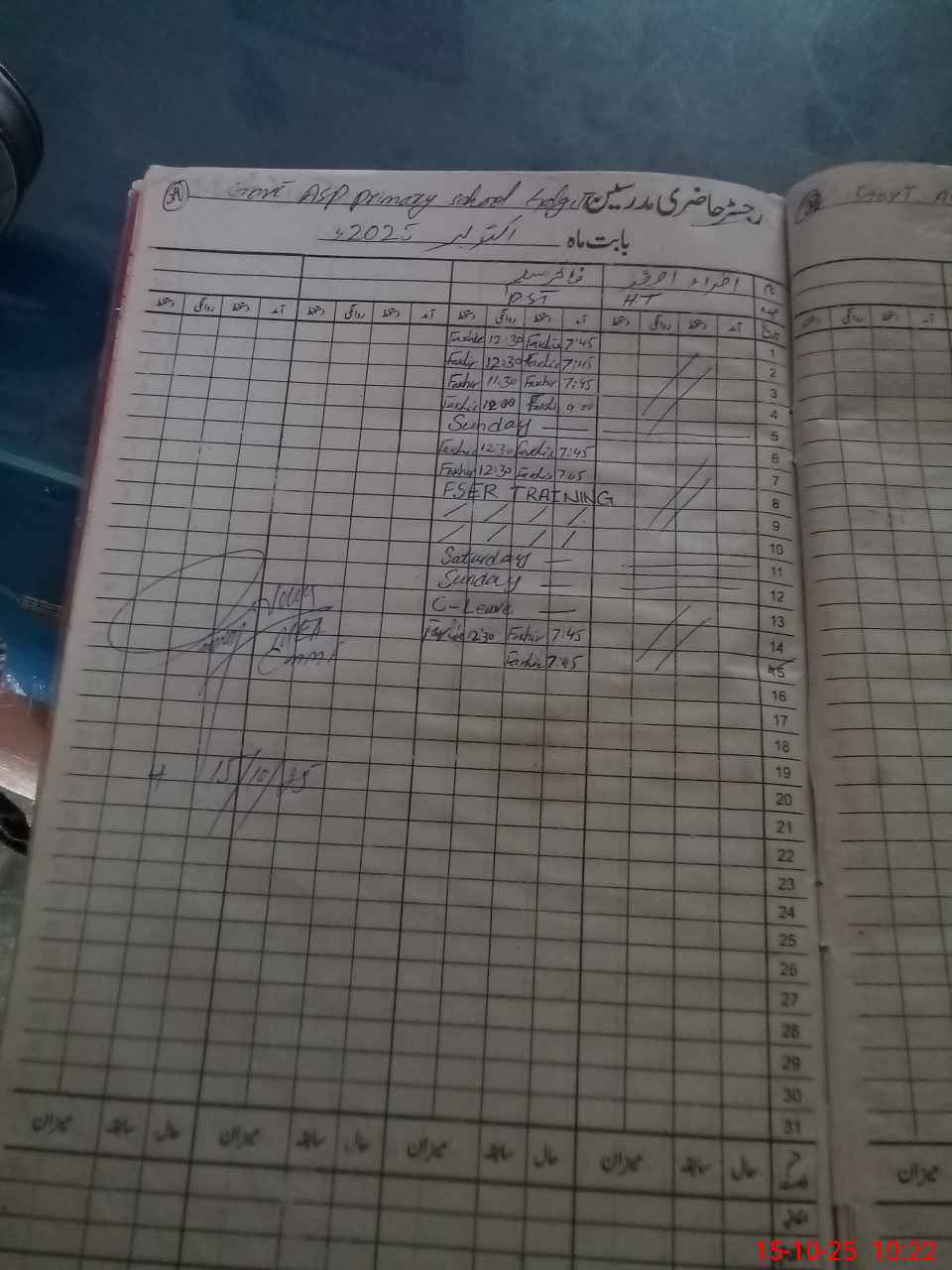 | Remarks (Use Separate Page if Required): IQRA ASGHAR PST ABSENT SINCE 01 OCTOBER 2025 | |||||