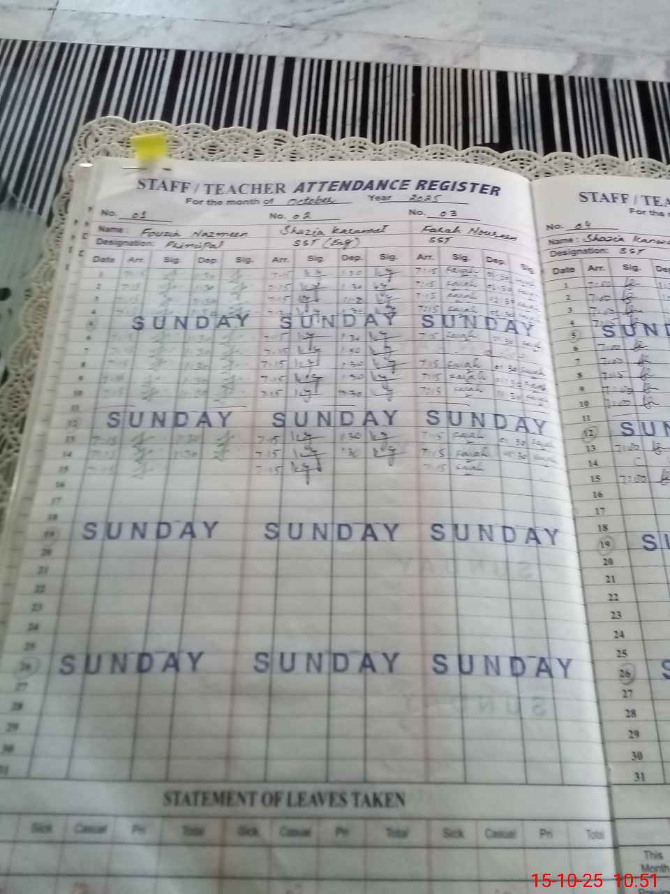 | Leave | Duty | Absent | Maternity | Medical | Ex- Pak |