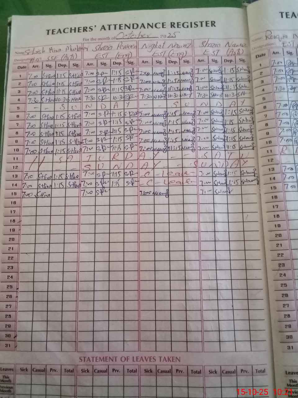 | Leave | Duty | Absent | Maternity | Medical | Ex- Pak |