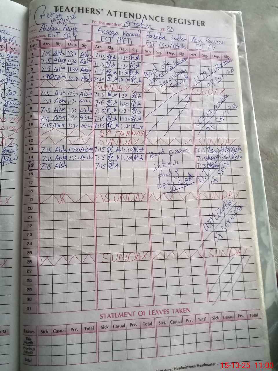 | 37**** | Ha**** Su**** | EST | Regular | 0 | 0 | 0 | 0 | 0 | 0 | 0 | 0 | 0 | Exam Duty |