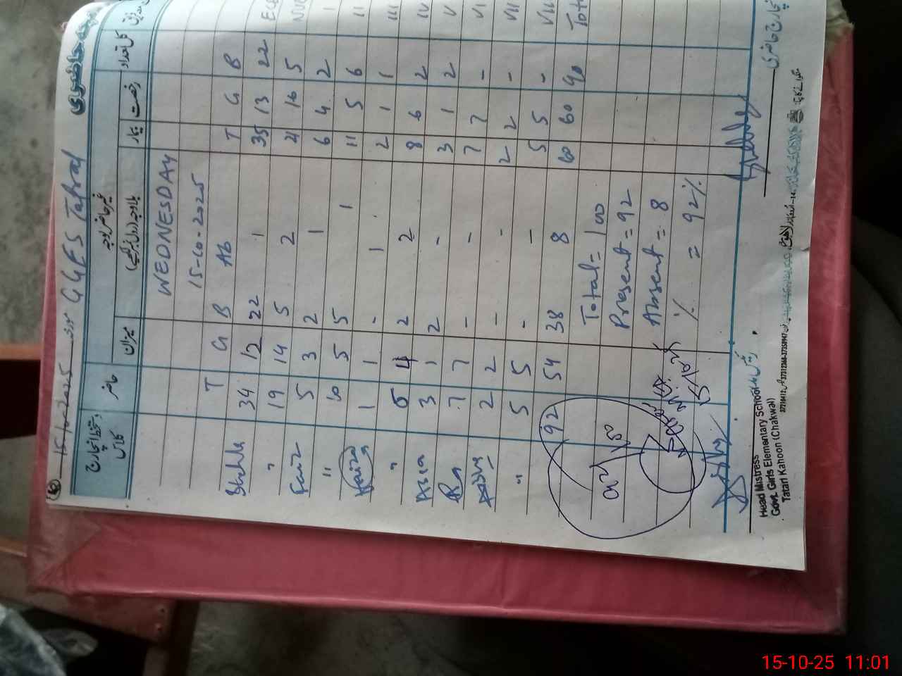 | No. of Students Present - Female | 12 | 0 | 14 | 3 | 5 | 1 | 4 | 1 | 7 | 2 | 5 | 54 | ||||