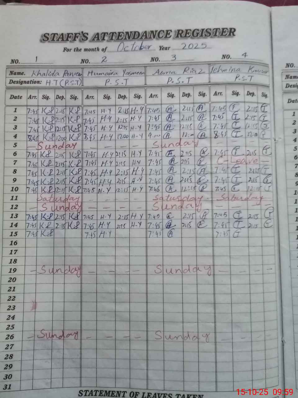 | 35**** | Fa**** Na**** | SG | 0 | 0 | 30 | 0 | 0 | 0 | 0 | 0 | 0 | Absent (Un-Authorized) | |