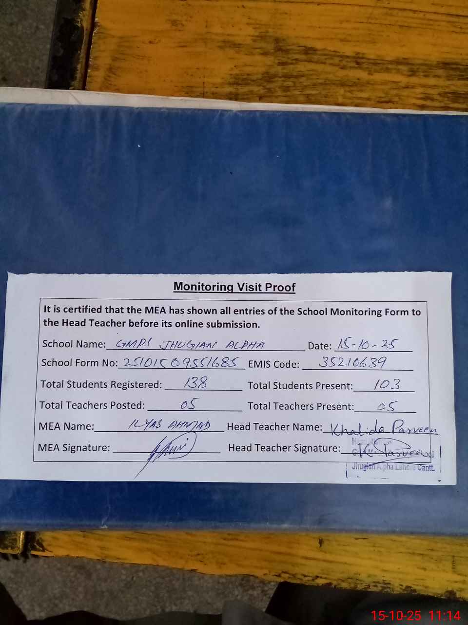 | EMIS Code: 35210639 | Name of School: GMPS JHUGIAN ALPHA | |||