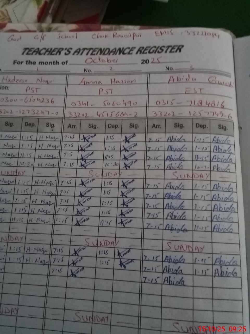 | Name: HA**** NQ**** Designation: (School Headmaster's/Headmistress's) PST Phone/Cell Number: 03**** |