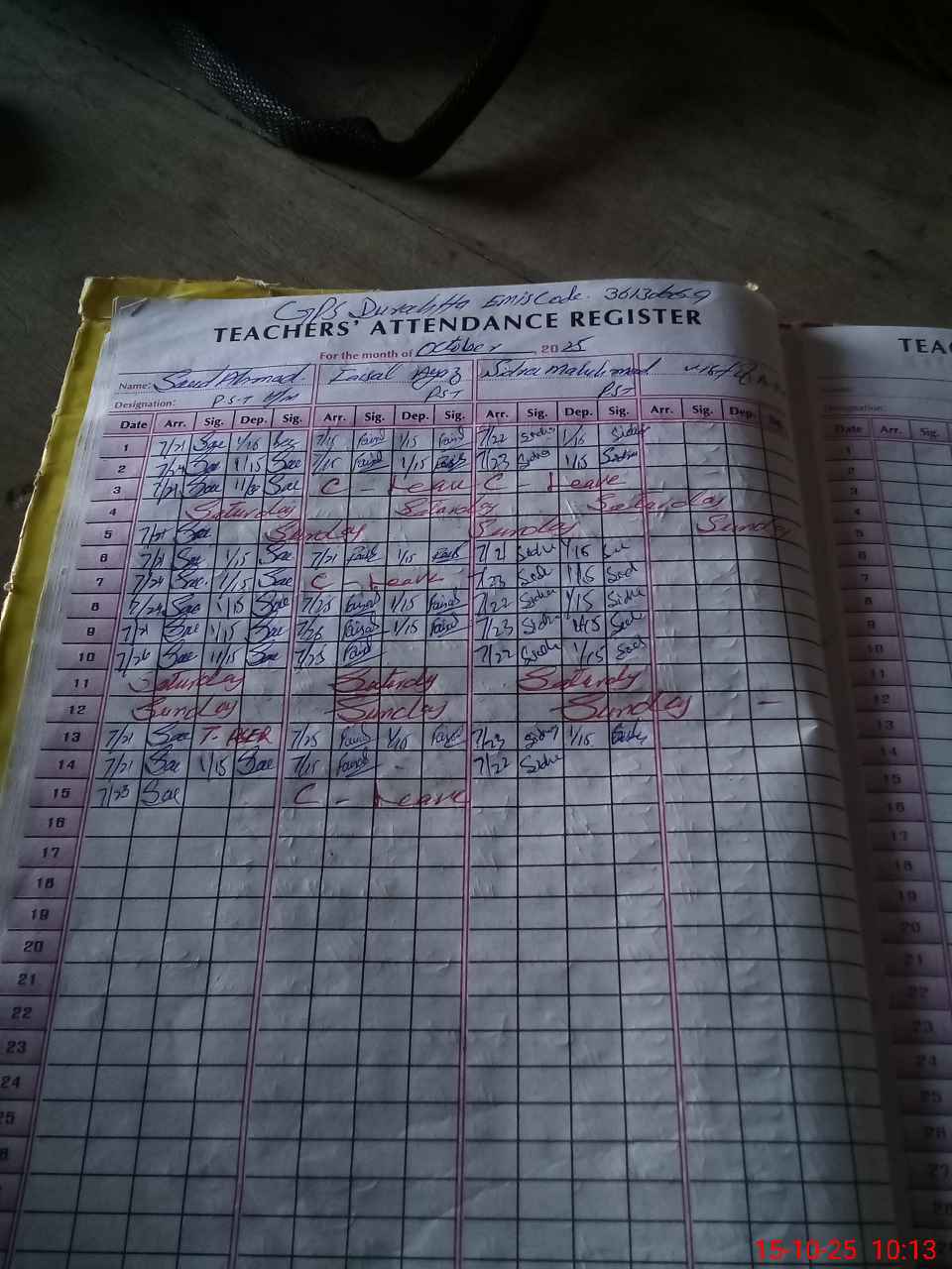 | Name: SA**** AH**** Pa**** Designation: (School Headmaster's/Headmistress's) PST Phone/Cell Number: 03**** |