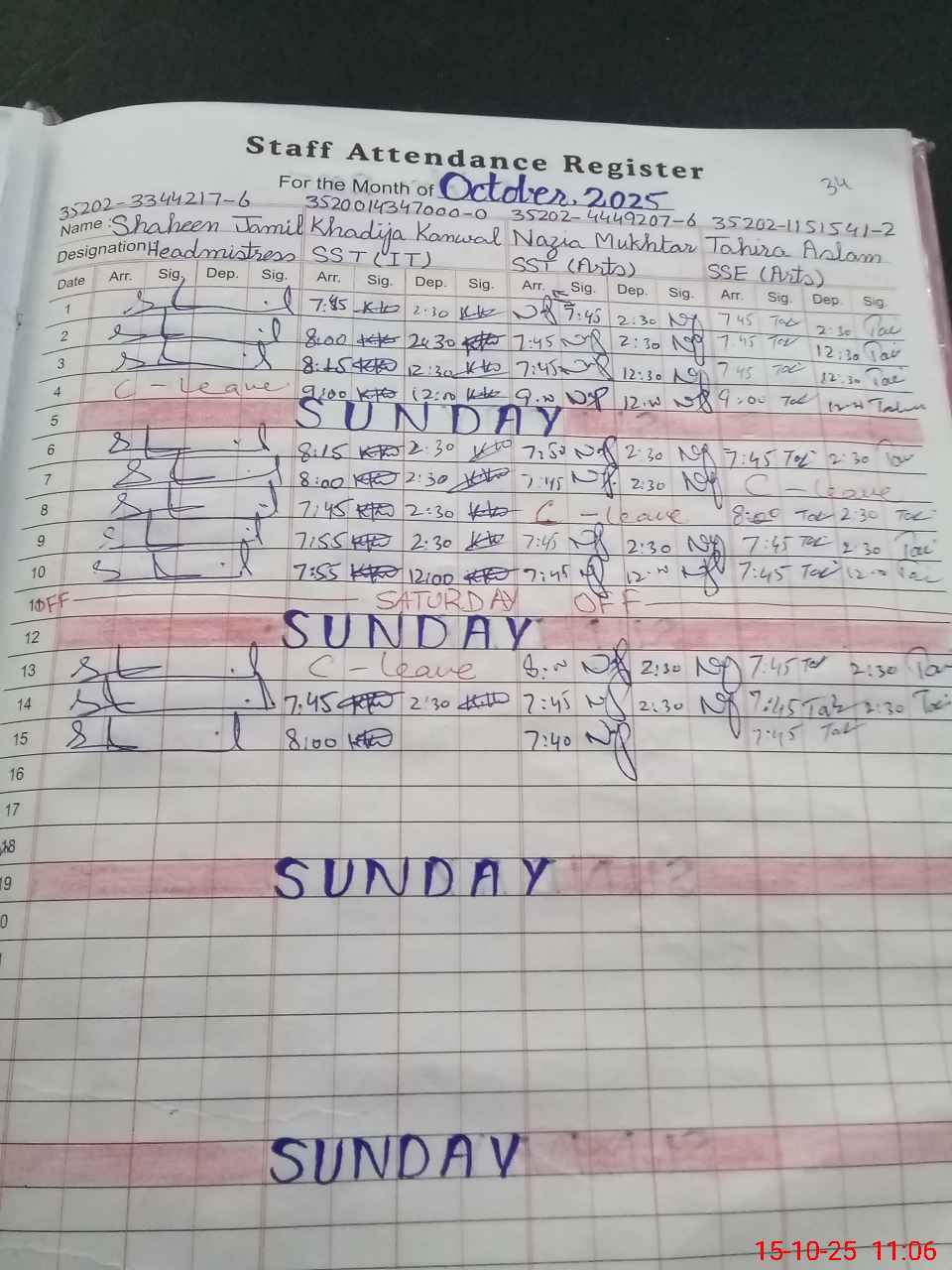 | CNIC | Full Name | Designation | R/C | Absence During Last Calender Month |