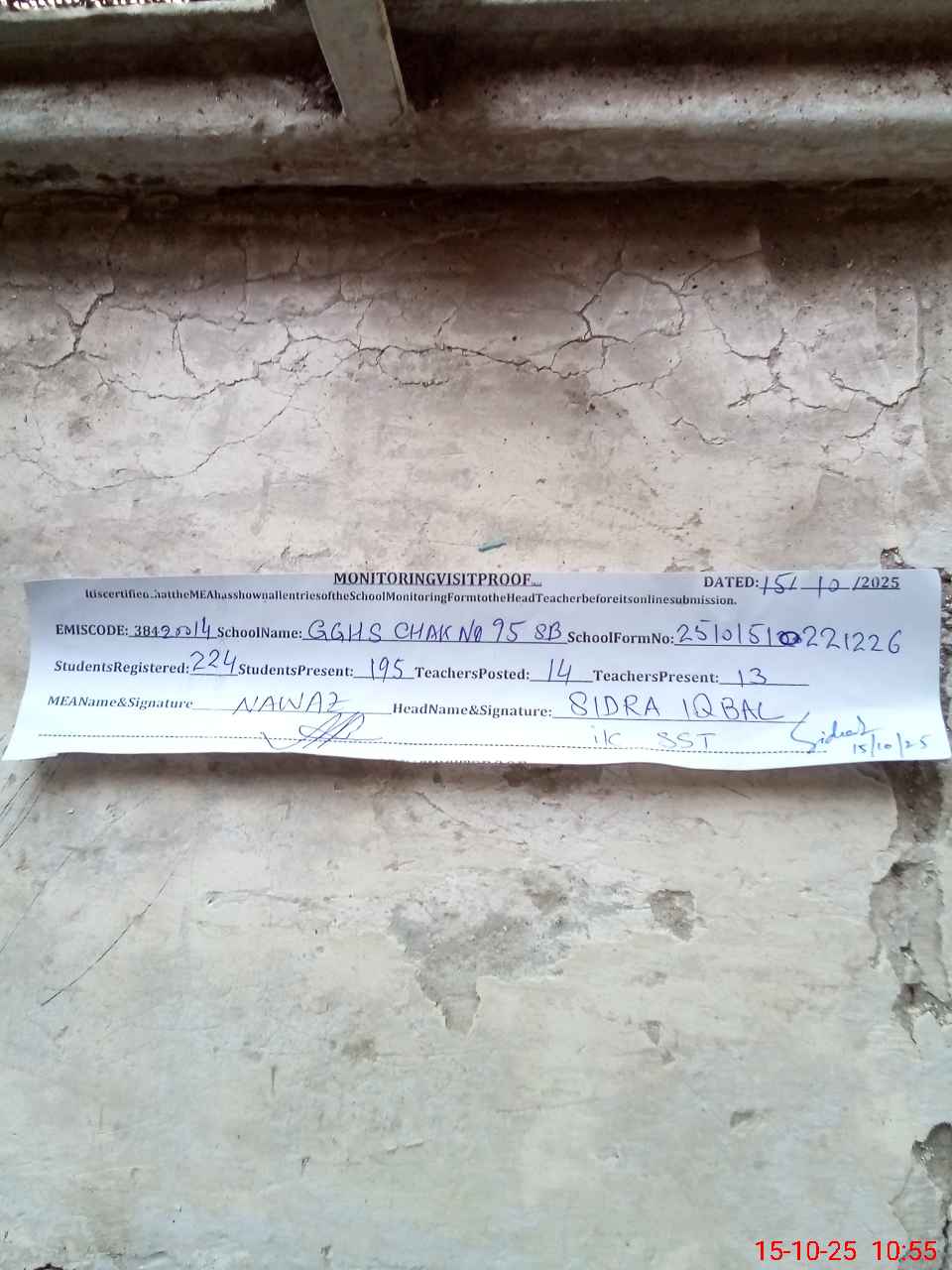 | EMIS Code: 38420014 | Name of School: GGHS CHAK NO.95 SB | |||