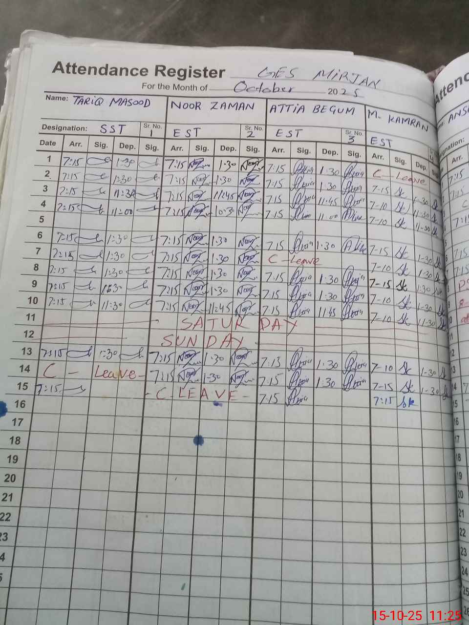 | CNIC | Full Name | Designation | R/C | Absence During Last Calender Month |